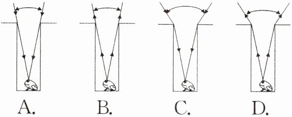 7. “井底之蛙”这个成语大家都很熟悉,意思是指井底的青蛙认为天只有井口那么大,比喻那些见识短浅的人。枯井中的青蛙位于井底中央,如图所示光路图中,能正确表示“坐井观天,所见甚小”含义的是(