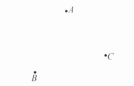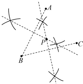 4. 尺规作图:如图,有三家公司$A$,$B$,$C$,现要建一个健身中心,且健身中心到三家公司的距离相等,请找出健身中心$P$的位置。