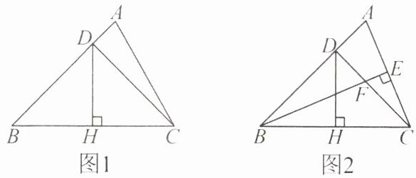 (2)如图 2,若$BE \perp AC$于点$E$,与$CD$相交于点$F$,求证:$\triangle BDF \cong \triangle CDA$。