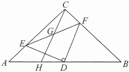 10. 如图,在$\triangle ABC$中,$AC = BC$,$\angle ACB = 90^{\circ}$,$D$为$AB$的中点。若$E$是$AC$上任意一点,$DF \perp DE$,交$BC$于点$F$。$G$为$EF$的中点,延长$CG$交$AB$于点$H$。