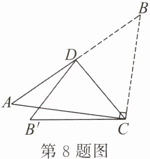 8. 如图,在$\mathrm{Rt}\triangle ABC$中,$\angle ACB = 90^{\circ}$,将$BC$沿斜边上的中线$CD$折叠到$CB'$。若$\angle B = 50^{\circ}$,则$\angle ACB' =$