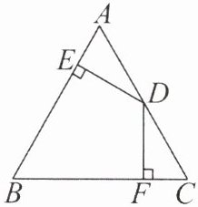 6. 如图,在 $\triangle ABC$ 中,$AB = AC$,$D$ 为 $AC$ 的中点,$DE\perp AB$,$DF\perp BC$,垂足分别为 $E$,$F$,且 $DE = DF$。求证:$\triangle ABC$ 是等边三角形。