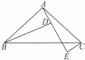 8. 如图,$A$,$D$,$E$三点在同一直线上,且$\triangle BAD\cong\triangle ACE$,$\angle BDA = 80^{\circ}$.