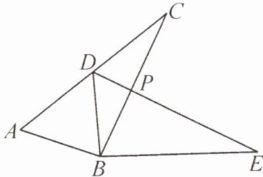 9. 如图,已知$\triangle ABC\cong\triangle DBE$,点$D$在$AC$上,$BC$与$DE$交于点$P$.