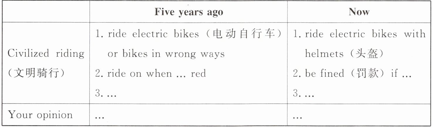 (change) a lot since five years ago.As for civilized riding, people used to ride electric bikes or bikes in wrong ways, and some of them even 4.