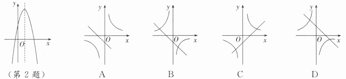 2. 若二次函数 $ y = ax^{2} + bx + c(ac \neq 0) $ 的图象如图所示,则一次函数 $ y = ax + b $ 与反比例函数 $ y = -\frac{c}{x} $ 在同一平面直角坐标系中的大致图象为(