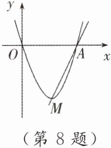 8. 如图,已知经过原点的抛物线 $ y = 2x^{2} + mx $ 与 $ x $ 轴相交于另一点 $ A(2, 0) $。