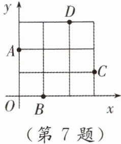 7. 在“探索函数 $ y = ax^{2} + bx + c(a \neq 0) $ 的系数 $ a $,$ b $,$ c $ 与图象的关系”活动中,老师给出了如图所示的平面直角坐标系中的四个点:$ A(0, 2) $,$ B(1, 0) $,$ C(3, 1) $,$ D(2, 3) $。同学们探索了经过这四个点中的三个点的二次函数图象,发现这些图象对应的函数表达式各不相同,其中 $ a $ 的值最大为(