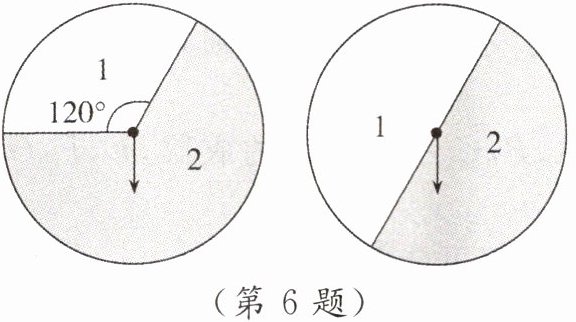 B【解析】在第一个转盘中,"2"对应的圆心角为$240^{\circ }$,是"1"对应的圆心角的2倍,把转盘划分成等大的3份,相当于"2"占两份,"1"占一份,画树状图如答图所示.