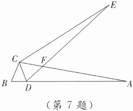 7. 如图,在△ABC中,点D在AB上,CB = CD,将CA绕点C旋转到CE的位置,使得∠ECA = ∠DCB,连结DE,与AC相交于点F,且∠B = 70°,∠A = 10°.