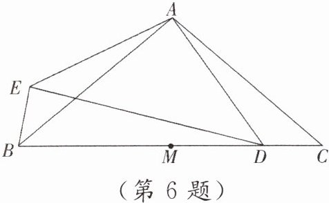 6. [原创]如图,在△ABC中,AB = AC,∠BAC = 100°,M为BC的中点,点D在MC上,以点A为旋转中心,将线段AD顺时针旋转100°得到线段AE,连结BE,DE. 若∠BAD = 85°,则∠BDE =