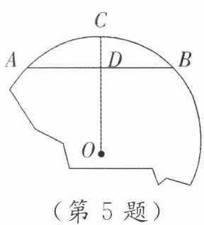 5. [教材P81作业题T2改编]如图,破残的轮片上,弓形的弦AB为480mm,高CD为70mm. 求这个轮片的直径.