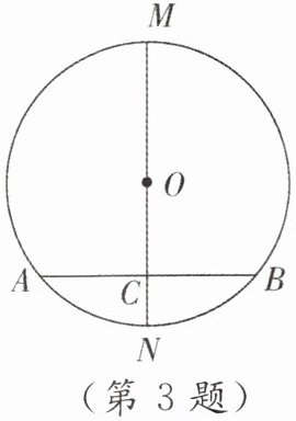 2. 如图,⊙O的弦AB= 8,M是AB的中点,且OM= 3,则⊙O的半径为(
