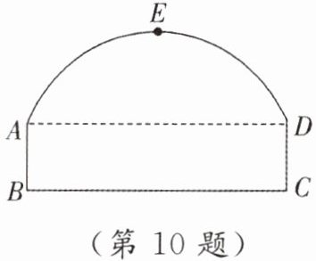 10. 如图,隧道的截面由$\overgroup{AED}$和矩形ABCD构成,矩形的长BC为12m,宽AB为3m,隧道的顶端E($\overgroup{AED}$的中点)高出道路(BC)7m.