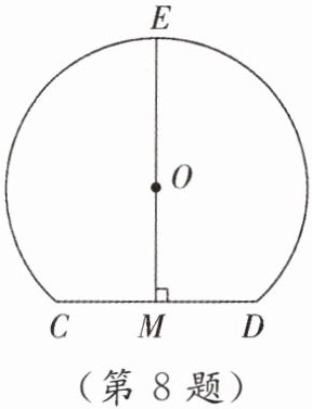 8. 如图,M是CD的中点,EM⊥CD. 若CD= 4,EM= 8,则$\overgroup{CED}$所在的⊙O的半径为
