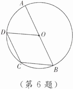 6. 如图,$C$,$D是以线段AB为直径的\odot O$上的两点,且四边形$OBCD$是菱形. 求证:$\overset{\LARGE{\frown}}{AD}= \overset{\LARGE{\frown}}{DC}$.