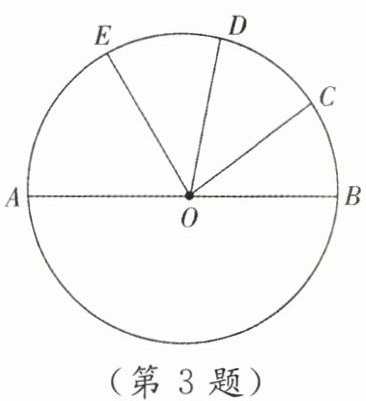 3. 如图,已知$AB是\odot O$的直径,$C$,$D是\overset{\LARGE{\frown}}{BE}$的三等分点,$\angle AOE = 60^{\circ}$,则$\angle COE$的度数为(