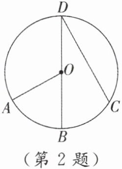 2. 如图,$BD是\odot O$的直径,点$A$,$C在\odot O$上,$\overset{\frown}{AB}= \overset{\frown}{BC}$,$\angle AOB = 60^{\circ}$,则$\angle BDC$的度数为(