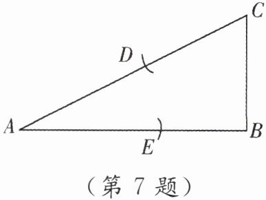 7. 如图,在 $ \mathrm{Rt}\triangle ABC $ 中,$ \angle B = 90^{\circ} $,$ AB = 2BC $,现以点 $ C $ 为圆心,$ CB $ 长为半径画弧,交 $ AC $ 于点 $ D $,再以点 $ A $ 为圆心,$ AD $ 长为半径画弧,交 $ AB $ 于点 $ E $. 求证:$ E $ 是线段 $ AB $ 的黄金分割点.