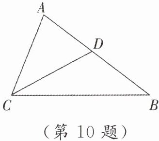 10. 如图,D 是 AB 的中点,△ABC∽△ACD,且 AD = 2,∠ADC = 65°.