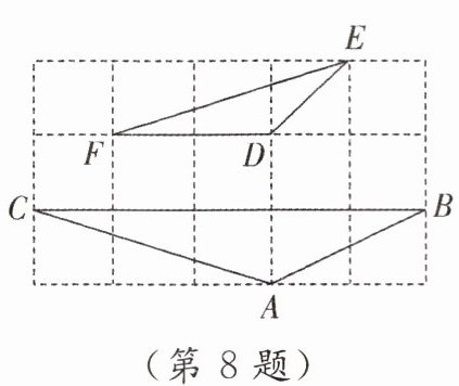 8. 如图,在正方形网格中,△ABC∽△DEF,则∠BAC 的度数为