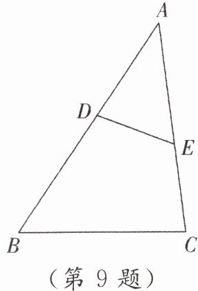 9. 如图,△ABC∽△AED,AD = 5 cm,BD = 6 cm,AC = 9 cm,则 AE =