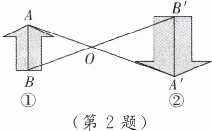 2. 如图,图①与图②是位似图形,点 O 是位似中心,位似比为 2:3,点 A,B 的对应点分别为点 $ A' $,$ B' $. 若 $ AB = 6 $,则 $ A'B' $ 的长为(