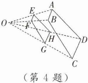 4. 如图,四边形 ABCD 与四边形 EFGH 位似,其位似中心为点 O,且 $ \frac{OE}{EA} = \frac{4}{3} $,则 $ \frac{FG}{BC} = $