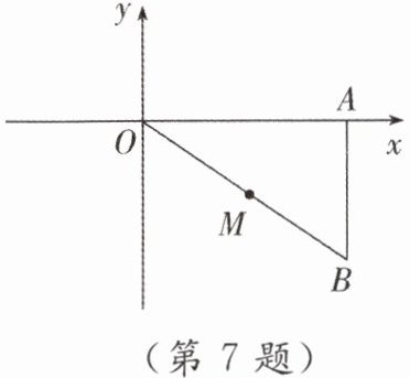 7. 如图,$ △AOB $ 三个顶点的坐标分别为 $ A(8,0) $,$ O(0,0) $,$ B(8,-6) $,M 为 OB 的中点,以点 O 为位似中心,把 $ △AOB $ 缩小为原来的 $ \frac{1}{2} $,得到 $ △A'O'B' $,$ M' $ 为 $ O'B' $ 的中点,则 $ MM' $ 的长为
