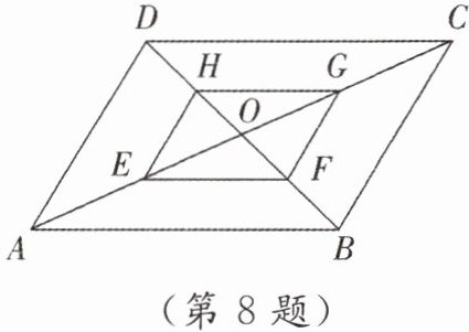 8. 如图,$ □ABCD $ 的对角线 AC,BD 相交于点 O,E,F,G,H 分别是线段 OA,OB,OC,OD 的中点,判断 $ □ABCD $ 与四边形 EFGH 是否为位似图形,并说明理由.
