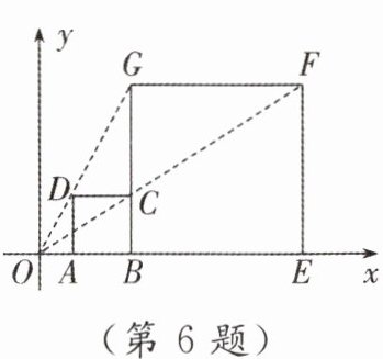 6. 如图,在平面直角坐标系中,正方形 ABCD 与正方形 BEFG 是以原点 O 为位似中心的位似图形,且位似比为 $ \frac{1}{3} $,点 A,B,E 在 x 轴上. 若正方形 BEFG 的边长为 6,则点 C 的坐标为(