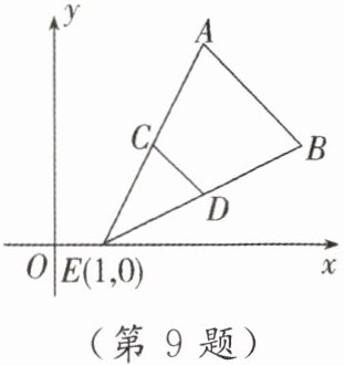 9. 如图,$ △ABE $ 和 $ △CDE $ 是以点 E 为位似中心的位似图形,已知点 $ A(3,4) $,$ C(2,2) $,$ D(3,1) $,则点 D 的对应点 B 的坐标为______.