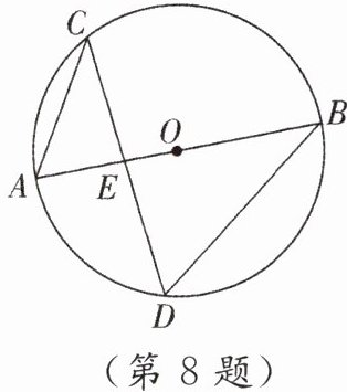 8. 如图,在半径为$3的\odot O$中,直径$AB与弦CD相交于点E$,连结$AC$,$BD$. 若$AC = 2$,求$\tan D$.