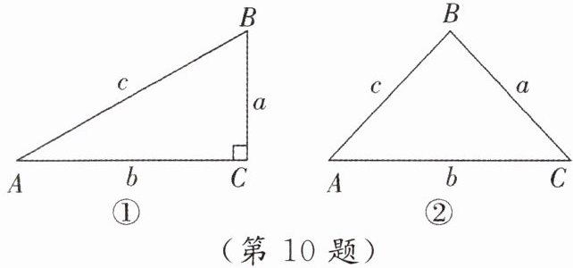 10. 如图①,在$Rt\triangle ABC$中,$\angle C = 90^{\circ}$,$\angle A$,$\angle B$,$\angle C的对边分别为a$,$b$,$c$. 以下是小亮探究$\frac{a}{\sin A}与\frac{b}{\sin B}$之间的数量关系的过程: