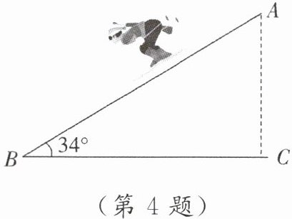 4. 如图,一名滑雪运动员沿着倾斜角为 $ 34^{\circ} $ 的斜坡,从点 $ A $ 滑行至点 $ B $. 已知 $ AB = 500m $,则这名滑雪运动员的高度下降了