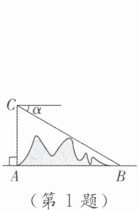 1. 如图,某地修建高速公路,要从A地向B地修一条隧道(点A,B在同一水平面上). 为了测量A,B两地之间的距离,一架直升机从A地出发,垂直上升800m到达C处,在C处观察B地的俯角为α,则A,B两地之间的距离为(