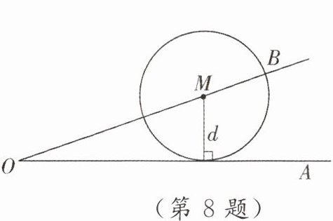 8. [原创]如图,$\odot M在射线OA$上滚动,$OM的延长线交\odot M于点B$.已知点$M到OA的距离为d$,设$\angle AOM的度数为\alpha$,则$OB$的长为(