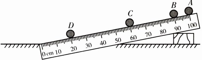 (4)由题图可知,小球通过AC段的路程$s_{AC}=$$100.0\ cm-60.0\ cm=40.0\ cm=0.400\ m$,所用时间$t_{AC}=0.2\ s×2=0.4\ s$,故由$v=\frac{s}{t}$可得,小球在AC段的平均速度$v_{AC}=\frac{s_{AC}}{t_{AC}}=$$\frac{0.400\ m}{0.4\ s}=1\ m/s$。
