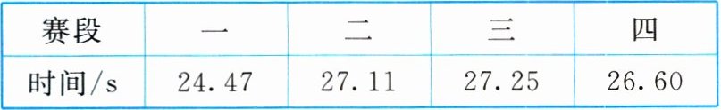 例1 小安在游泳比赛中夺得自由泳200m冠军。以每50m为一个赛段,他在四个赛段的成绩如下表所示,在此次比赛中,小安运动最快的赛段是(