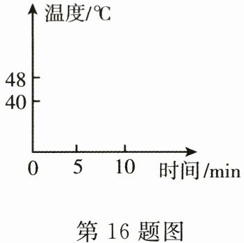 16. 在探究晶体的熔化实验过程中,某一初温为40℃的晶体,加热的前5min处于固态,温度逐渐上升,第5~10min处于固液共存状态,且温度保持在48℃不变,第10min后处于液态,温度又出现逐渐上升的现象。请在图中作出该晶体的熔化图像。