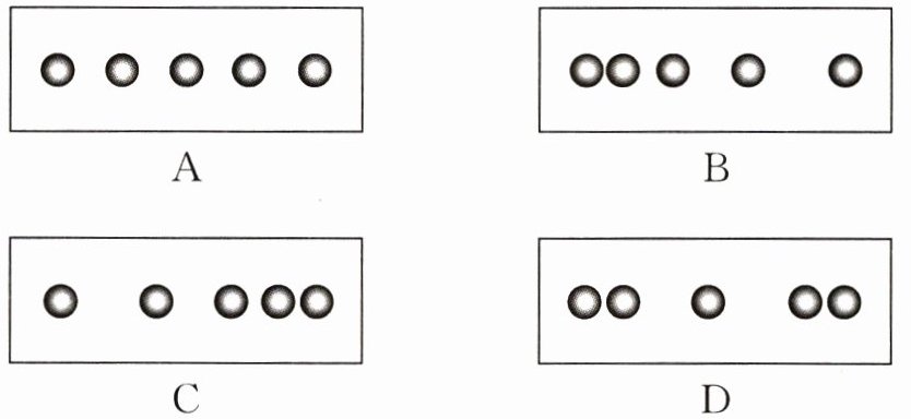 例 1 小球从左向右运动,每隔相等时间曝光一次所得到的照片如下图所示,其中小球做匀速直线运动的是(