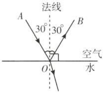 17. 如图所示,光从空气射入水中,根据给出的反射光线$OB$,完成光路图。