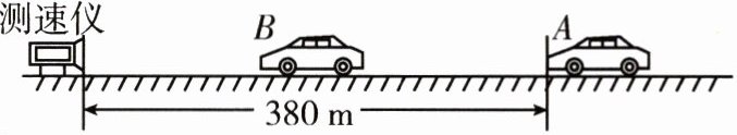 (1)1 s (2)340 m (3)40 m/s 该车超速 解析(1)由题意知,测速仪发出的信号经$\frac{1}{2}×2\ s=1\ s$与汽车相遇。(2)超声波信号刚遇到汽车时,汽车与测速仪之间的距离等于超声波反射前传播的距离,$s=v_{声}t=340\ m/s×1\ s=340\ m$。(3)汽车行驶的距离$s'=380\ m-340\ m=40\ m$;汽车的平均速度$v=\frac{s'}{t}=\frac{40\ m}{1\ s}=40\ m/s=144\ km/h>120\ km/h$,所以该车超速。