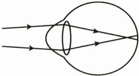 2. 常见的视力缺陷有近视和远视。右图是一位视力缺陷者的眼球成像示意图,他的视力缺陷类型及矫正视力应该戴的透镜种类是( )。