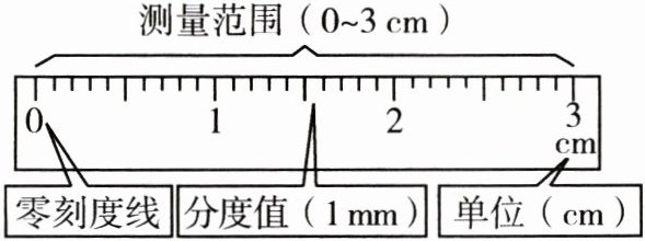 |测量前|(1)选:根据测量的要求选择合适的刻度尺。如上图所示,该刻度尺的测量范围为0~10 cm,分度值为