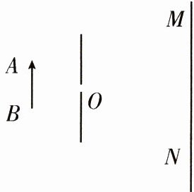 7. 如图所示,不透明的挡板上有一个很小的孔 $ O $,$ AB $ 是小孔前的发光物体,$ MN $ 为光屏,请画出 $ AB $ 在 $ MN $ 上所成的像。
