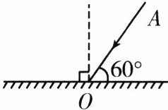 7. 如图所示,一束光 $ AO $ 射向镜面,画出它的反射光线并标出反射角的大小。