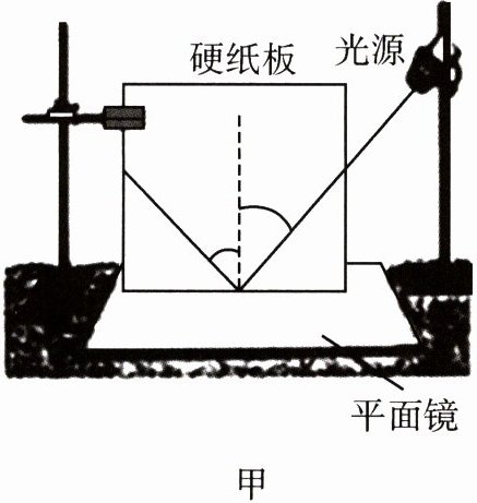 6. 在研究光的反射定律的实验中,小杰同学准备了可折转的白色硬纸板、平面镜、激光笔、直尺、量角器、铅笔,如图甲所示。