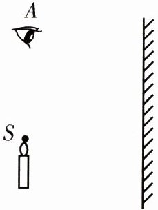 9. 根据平面镜成像的特点和成像原理,在图中画出由 $ S $ 发出的一条光线经过镜面反射后进入眼睛 $ A $ 点的光路。