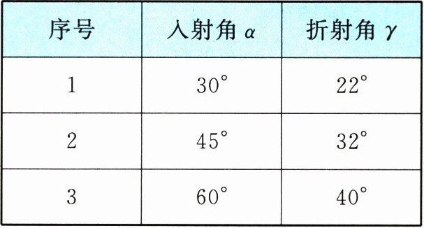 | 序号 | 入射角 $ \alpha $ | 折射角 $ \gamma $ |